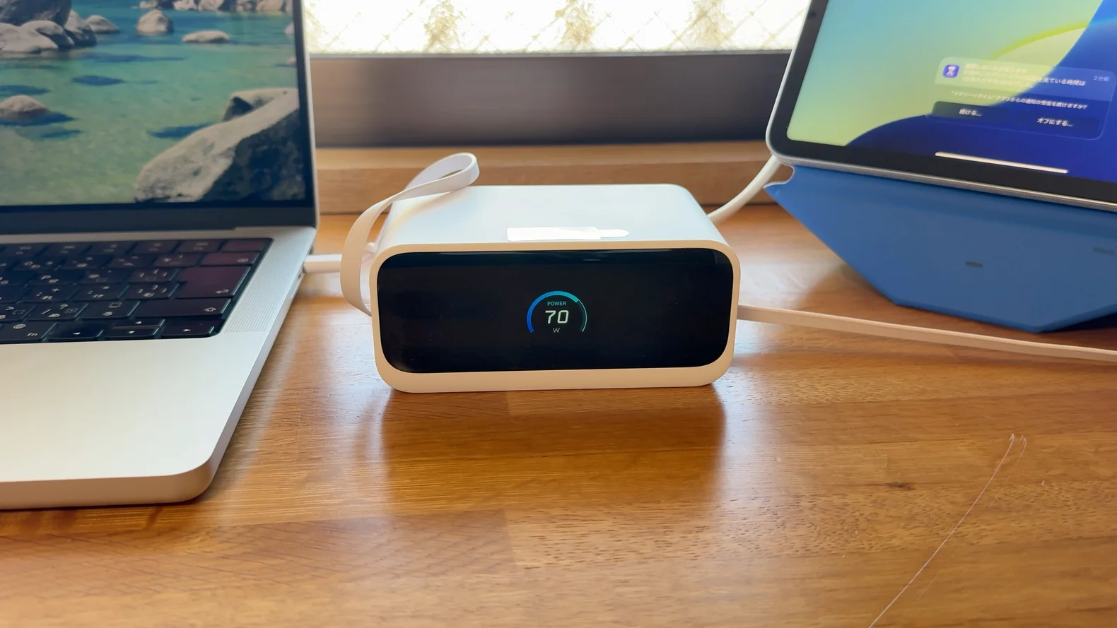 このスペーシーな見た目と充電のしている総容量や単ポート毎の充電をモニタリングできるディスプレイがついているという所もガジェットマニアの心を鷲掴みにすると思っているのですが、デスク周りのインテリア好きの方にもこのスタイリッシュな佇まいに惹かれることは間違いないでしょう!